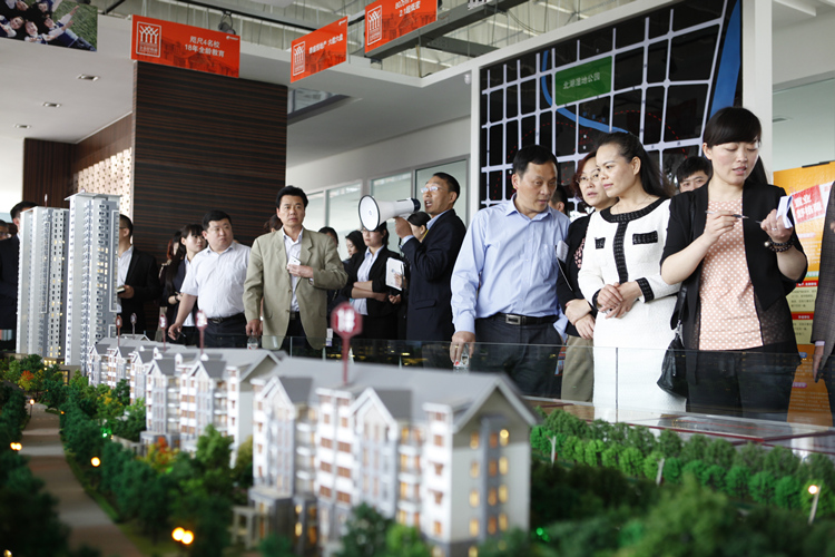 參觀完后,大家乘車前往舒格蘭。沿著風光旖旎的濱河西路,公司車輛與員工車輛組成了長長的車隊,蔚為壯觀。來到舒格蘭。吳萬源經理向大家介紹了舒格蘭項目的位置和北城新區的城市規劃。來到景觀示范區,大家參觀了樹木叢生、綠草如茵的園林景觀以及奢華典雅的樣板間。