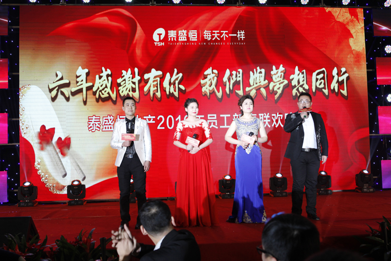 晚會(huì)之前,廣大員工紛紛在簽名墻和祝福墻上進(jìn)行簽名和留言,寫下自己的新年愿望和對(duì)公司的美好祝福。下午四時(shí),現(xiàn)場人員共同觀看了公司的拜年視頻、《與夢想同行》主題視頻。隨著開場舞《光耀泰盛恒》的華麗上演,晚會(huì)拉開帷幕。公司總經(jīng)理趙利捷上臺(tái)致答謝詞,表達(dá)了對(duì)員工及其家屬的感謝和祝福,并宣布晚會(huì)正式開始。