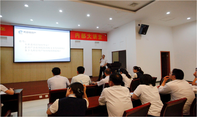 培訓會上,周總就營改增后企業面臨的風險以及如何規避風險、應該注意的各個方面、稅收管理新思路、增值稅簡介、納稅人資格管理、新老項目界定、計稅方式選擇、供應商身份選擇、合同與票據結算、可抵扣稅額的發票種類、開發全程各階段票據管理、過渡期內特別事項規定、營改增后計稅依據、個人出租住房等內容作了詳細的介紹。